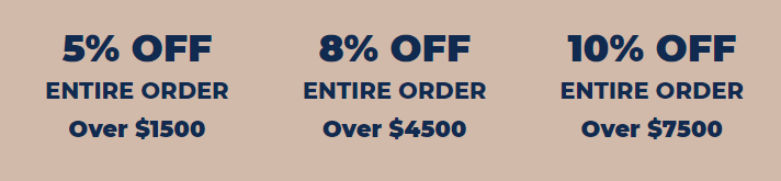 Did you know that you can save more when you qualify for volume discounts? You can save up to 5%, 8%, and even 10% off our discounted retail price when you order over a certain dollar amount. We offer these volume discounts to help those who may be purchasing an entire set of furniture for a room in their home.