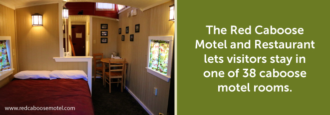 - Red Caboose Motel. Located in Ronks, the Red Caboose Motel and Restaurant lets visitors stay in one of 38 caboose motel rooms. Part of the scenery since 1970, his unique hotel has accommodated tens of thousands of visitors. Hotel prices start at just $85 a night. The motel’s prime location in the heart of the Amish farming community puts you a moment’s walk away from the Choo Choo Barn and the Pennsylvania Railroad Museum.