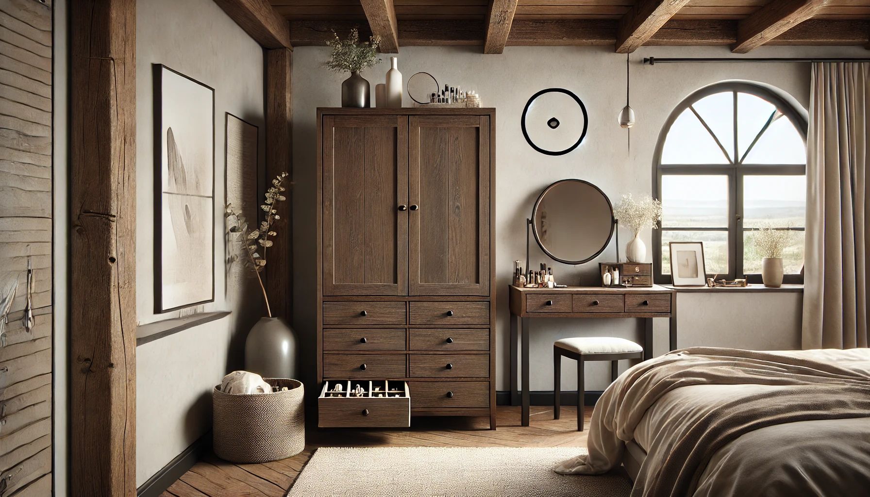Adding an armoire enhances your room's aesthetic while expanding your storage space.