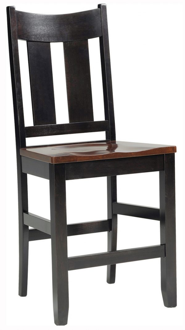 Two-tone chairs make a delightful addition to any room that requires seating. Our Amish Clanton Stationary Bar Chair features a rich Rustic Cherry top and a gorgeous Brown Maple bottom. When you choose this chair, you add great versatility to a room. You can put these bar chairs at a breakfast nook or high table or add them to a wet bar.