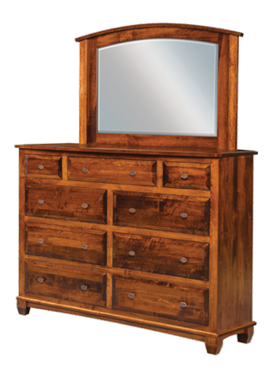 Amish Bella 9-Drawer Dresser with Arched Mirror