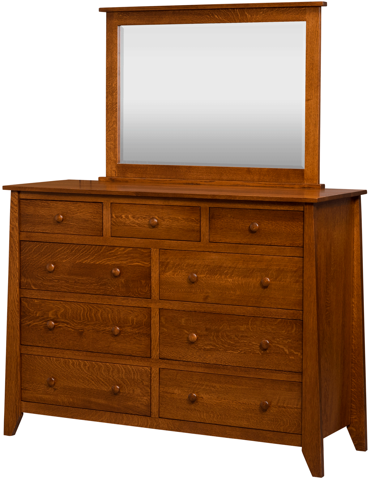 We make our furniture to order, so you’ll have plenty of choices when you buy the Amish Berwick 9-Drawer Dresser with Mirror. We can make it from your preferred wood type, like Oak or Q.S. White Oak. You can also select a stain, such as Golden Oak or Smoke. The stain will preserve the gorgeous natural grain of the oak.