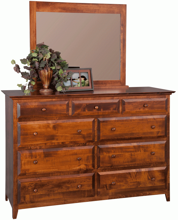 Amish English Shaker 66″ Dresser with Tri-View Mirror