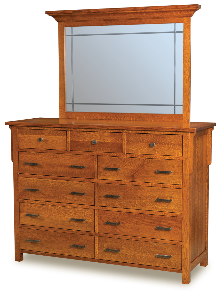 Like all our furniture, the Amish Kingston Prairie 11-Drawer Dresser With Mirror is made in the U.S. by Amish artisans. The Amish spend decades dedicated to their craft. They study furniture making with their elders and then use traditional techniques, such as tongue and groove jointing and mortise and tenon jointing. They avoid electricity because it goes against their beliefs. Instead, they stick to pneumatic and hand tools.