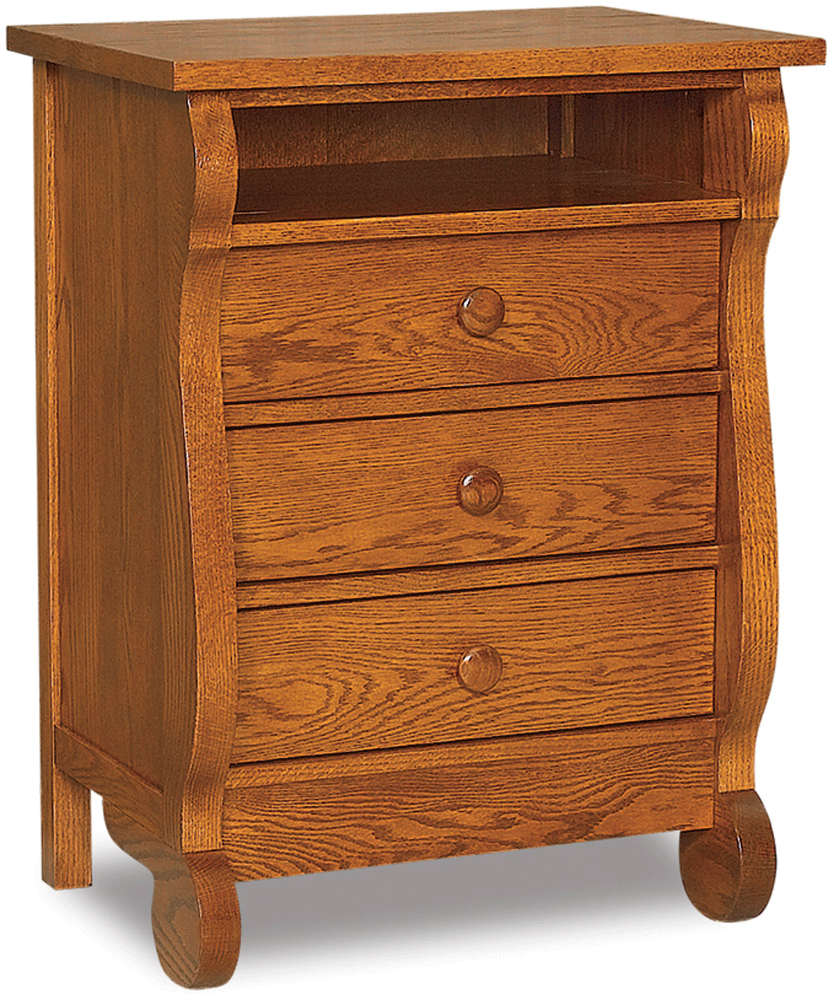 Amish Old Classic Sleigh 3 Drawer Nightstand with Opening