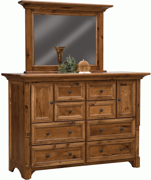 Our beautifully constructed Amish Palisade 8 Drawer Dresser With Mirror features Amish construction, which makes it more durable than any mass-produced piece. Artisans use sturdy kiln-dried, solid wood for each piece. You can stack frames, vases or souvenirs across the top of this gorgeous dresser to create ambiance in your room.