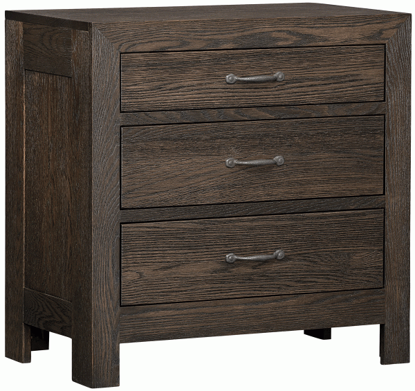 The Amish Sherman three drawer nightstand is crafted with American hardwoods and made to compliment your modern style bedroom. This nightstand is manufactured using time-tested Amish craftsmanship which promises attention to detail and durable construction. The Amish Sherman nightstand measures 30″W x 18¾”D x 30″H and comes with dovetailed drawers with soft close drawer slides. Make your nightstand very functional by adding a power strip or LED nightlight around the base of the nightstand. Choose from our selection of stain colors to customize the Amish Sherman nightstand for your bedroom.