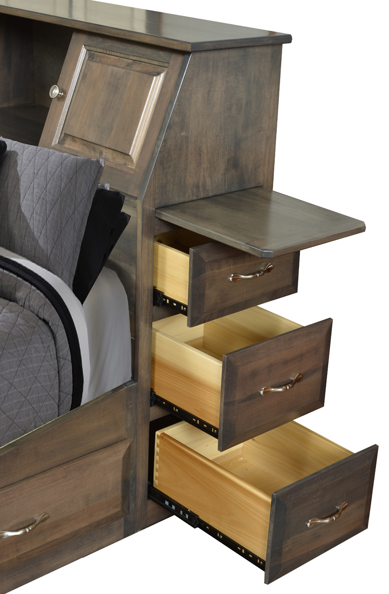 – Pull-Out Tray with Knob (Not Shown) on Each Side of Headboard