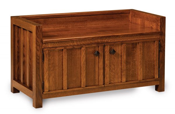 Unlike a lot of mission-inspired furniture, we don’t compromise quality or artisanship. Our furniture, such as the Amish Mission Two-Door Bench in oak, captures both the look and the spirit of the mission movement, giving you a piece that, if taken care of, will stay in the household for years to come.