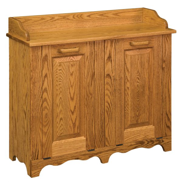 The bin cleverly conceals two plastic waste baskets that are included with your purchase, making it a sophisticated way to keep trash out of sight – and out of mind. Simply pull the door handles to tilt out the baskets for easy placement and removal. The small shelf on top can be used for displaying decorative knickknacks or holding common kitchen or household items. The meticulous Amish construction ensures that your bin will be a part of your kitchen décor for many years to come.