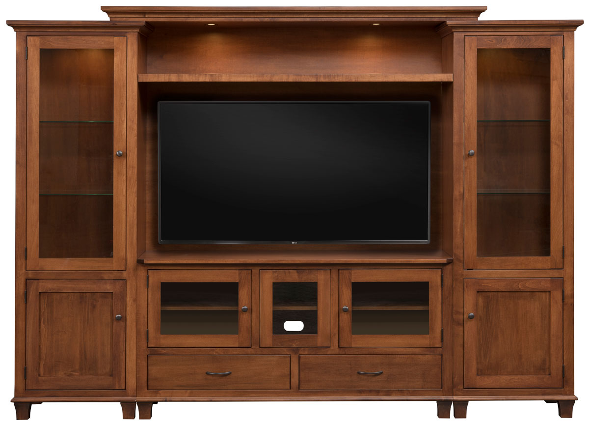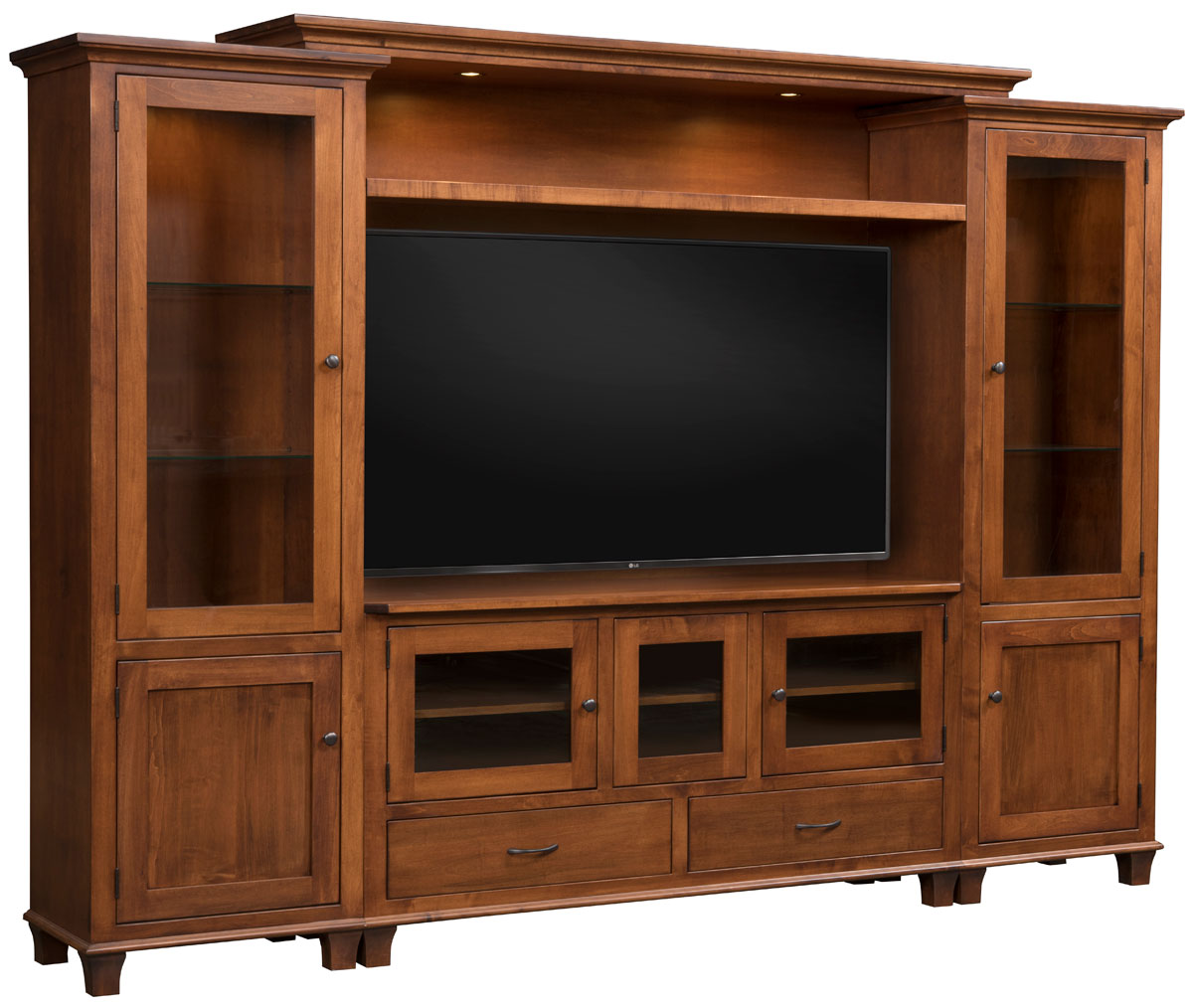 You want a new TV stand — but not just any TV stand. You want one deluxe enough to accommodate a range of knickknacks in addition to holding your television set, DVD player and game console. You envision a unit with bookcases, lighting to showcase your treasured photographs and cabinets where you can store movies, video games and remotes. If this sounds like what you want in a TV stand, you should take a look at our Amish Bourten Bridge Wall Unit.