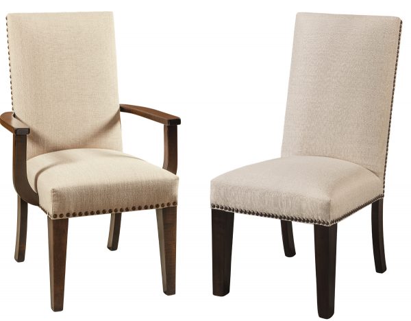 Like all the solid wood furniture sold by AmishOutletStore.com, the Amish Corbin Chair is made in the USA. You can customize it to match your existing decor, complementing both traditional and modern designs. Our wood choices include varieties like Brown Maple and Q.S. White Oak, while our stains range from lighter options like Seely to darker tones such as Antique Slate. You can buy our Amish Corbin Chair in leather or upholstery, which comes with dozens of fabric choices. We also offer several nail head options for you to choose from.