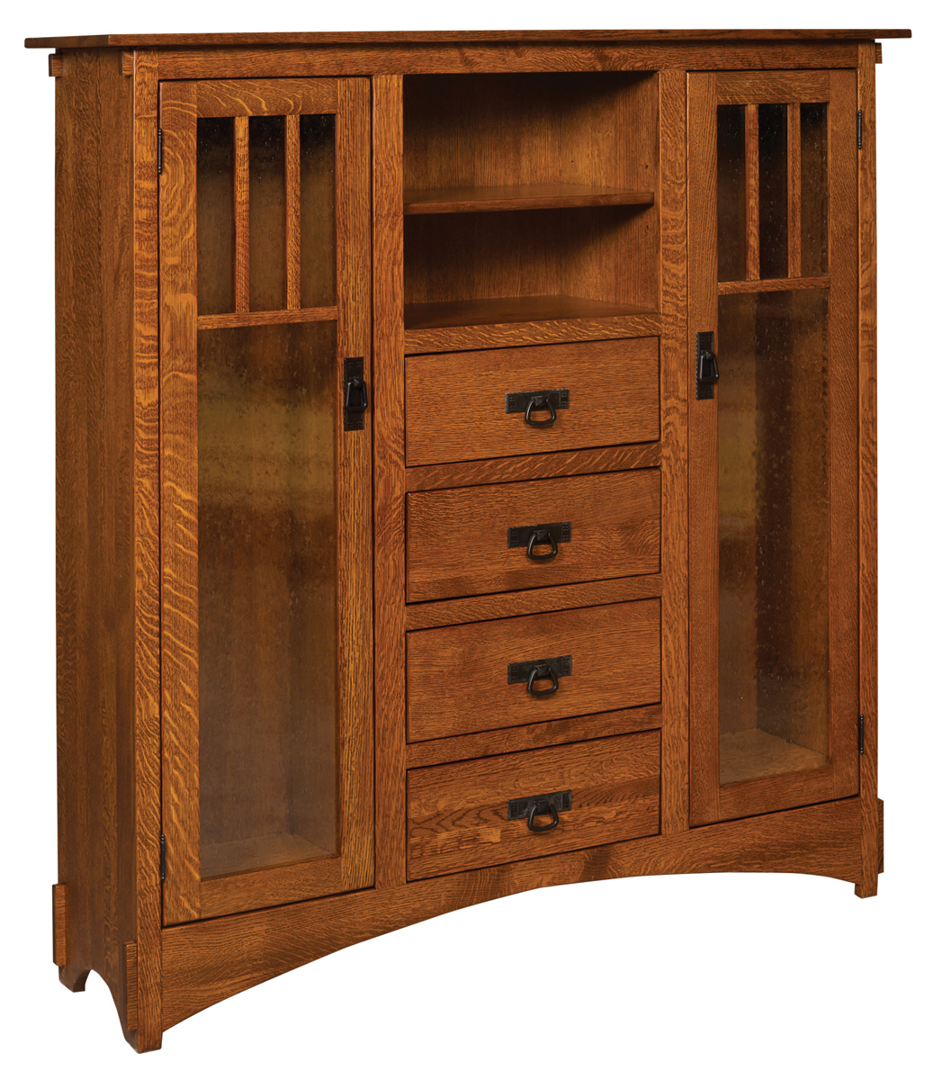 The Amish Mission Display Bookcase with Drawers is made in the USA by the Amish. These artisans demonstrate unmatched skill in creating small details on every piece of furniture they handcraft from scratch. Each bookcase we sell comes with impressive customization options. You can choose what type of wood we use to make the furniture, such as Q.S. White Oak or Cherry. We can also apply a stain. Want a lighter piece? A darker one? We have stains to fit either preference.