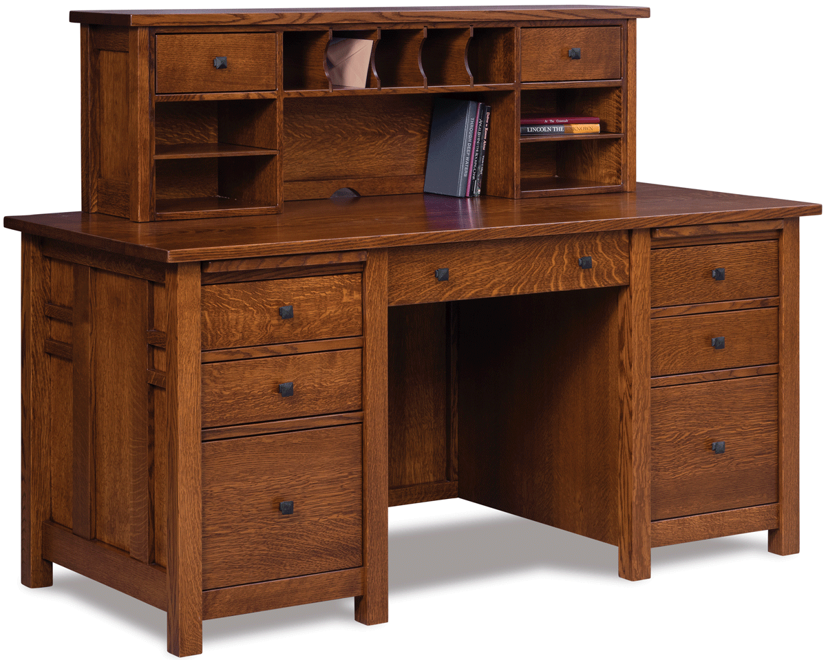 Stylish and practical, the Amish Kascade Desk with 2-Drawer Desk Topper makes a statement in any office space and will be the best gift you ever gave yourself! Just like the rest of our Amish Kascade Office collection, it has a lovely Mission design with charming details. Like side panel cutouts in both the desk and hutch as well as carbon black square knobs that have a subtle finish and feel to them. The desk and hutch are scaled to provide versatile storage with ample workspace so that you have everything organized and within reach. Â