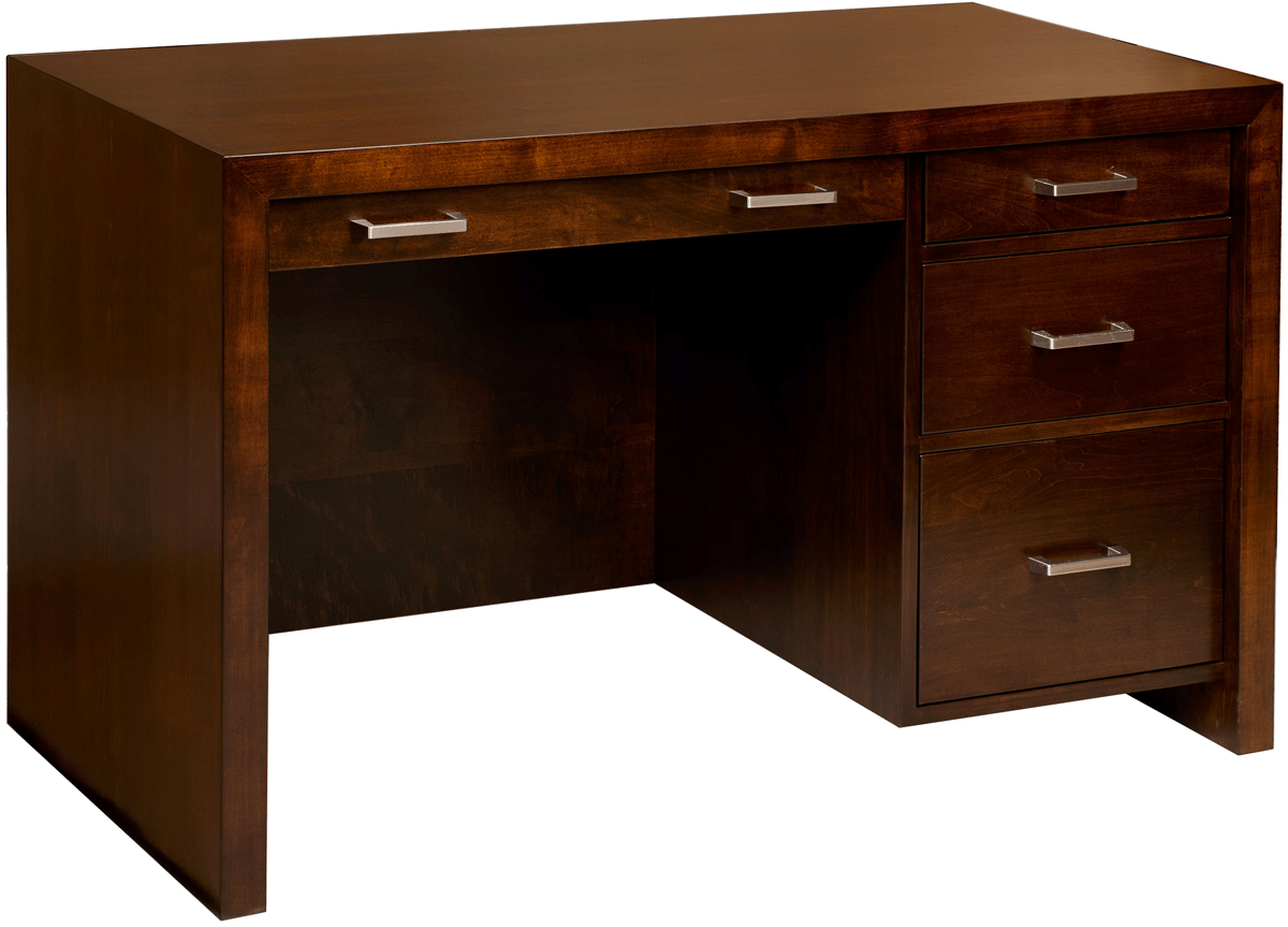 The rich dark hand-applied finish brings a tone of sophistication to this elegant piece. Flat, rectangular bar pulls are a natural complement to this Amish desk’s contemporary style. Its impressive framework comprises 1 7/8″ thick solid wood top and sides. All the drawers in this compact single pedestal desk are well-arranged. It features a pencil drawer at the front for storing paper and writing utensils, two multi-purpose storage drawers, and a letter-sized file drawer.