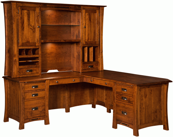 This Amish Arts & Crafts Corner L Desk is the staple of our Amish Arts & Crafts Office Collection and pairs perfectly with the complementing file cabinet, bookcases, and other items from the group. By placing it in the corner of your office, you can make clever use of the space. You may even place the return against a wall to display the finished back on the desk side for clients and staff to see.