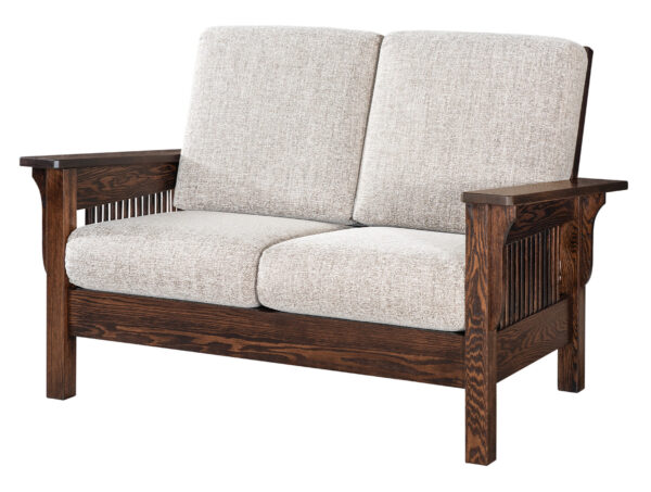 Many of our biggest fans love our furniture because every piece is made to order and done by hand. You can select a stain for the loveseat’s Oak finish, such as Seely or Black Walnut. You can also choose the fabric we use, such as a dark solid or a peppy pattern. You’ll receive a loveseat made with the utmost care no matter what you pick. Our Amish artisans employ only the best materials for each creation.