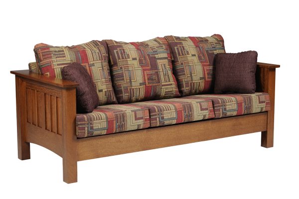 We offer many customization options. Our sofa comes in seven different types of wood, including rustic cherry, maple and hickory. You can choose from more than two dozen fabric options. And we also offer loads of stain possibilities, from Asbury to MX to Medium. You can pick a hue that fits right in with your existing décor or try something entirely new. Our Mission-style sofa also has other special features: