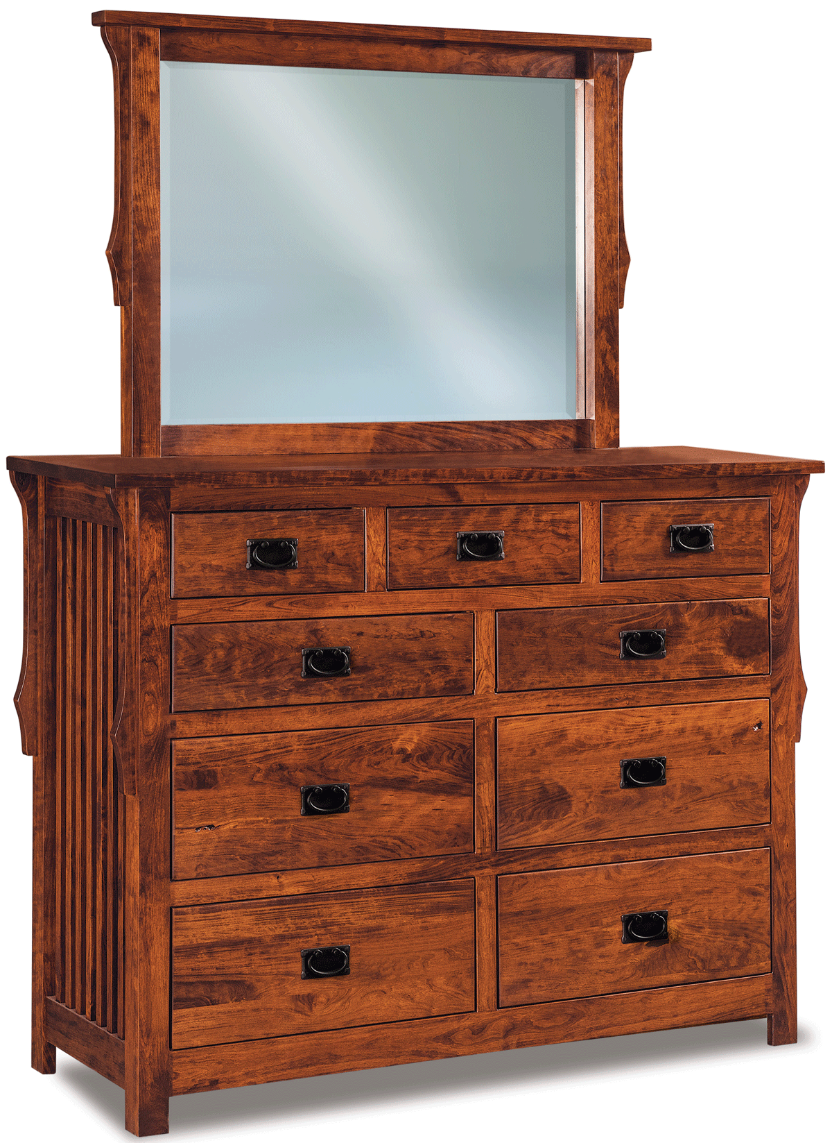 BEDROOM: Stick Mission 9 Drawer Dresser with Mirror in QSWO
