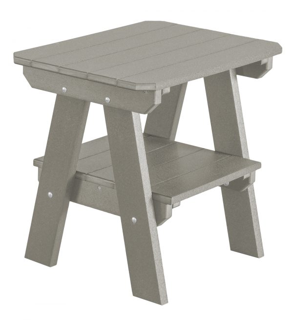 Good looks unite with functionality to create our Wildridge Heritage Two Tier End Table that will be perfect company for any of our traditionally sized gliders, chairs or chaise lounges. Handcrafted from durable poly lumber, this Amish-made table has a classic slatted surface with corbels and strong tapered legs that will easily garner compliments from all who see it. The two shelves give you plenty of space to keep your books and magazines along with drinks, snacks or sunglasses. With a variety of attractive, fade-resistant poly colors available in standard and two-tone options, you can easily mix and match to coordinate with your existing outdoor decor.