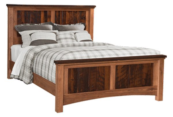 Amish Lewiston Panel Bed with Reclaimed Barnwood Tops and Panels