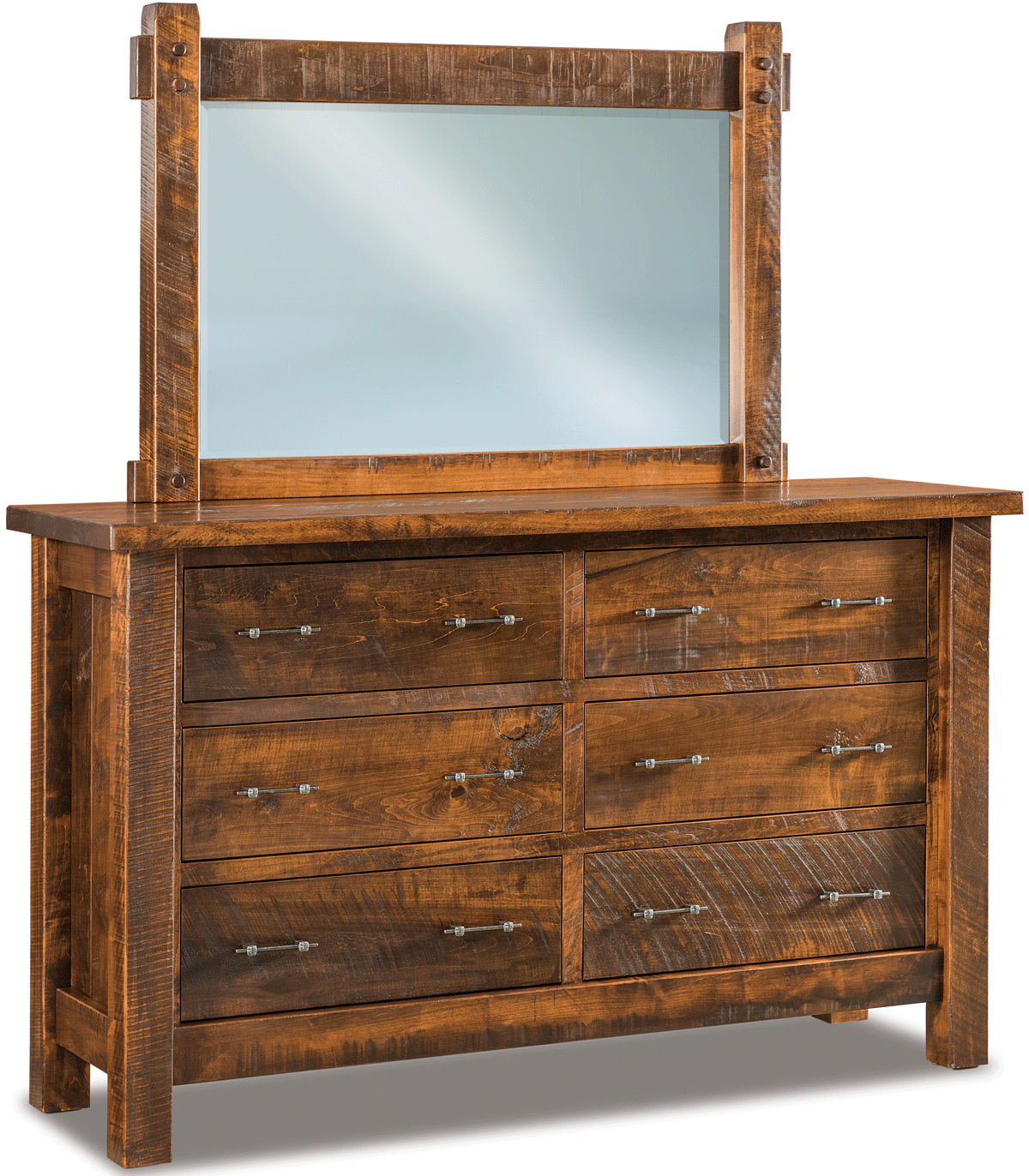 Take one look at our Amish Houston Rustic 6-Drawer Dresser with Mirror in Brown Maple, and you may feel transported to a cabin in the woods or a farmhouse on the prairie. The unique quality of the dresser is inspiring, looking as though it belongs in a movie. The distinctive rough-sawn brown maple tells a story, and you want to listen. Putting our dresser in your bedroom improves the look of the entire room.