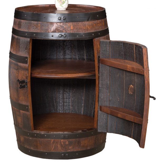 A natural finish embraces the wood’s rustic lines, markings and colorations. Make any room feel like you’re visiting a beach or a romantic vineyard with this barrel cabinet, which you could also use as a tabletop for holding your drinks and displaying decorations.