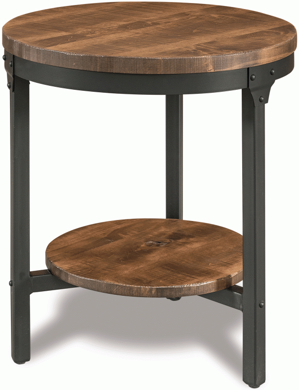 Amish Houston 22″ Round Steel Rustic End Table in Brown Maple
